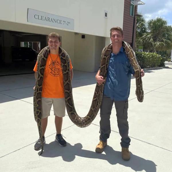 Jake Waleri observó junto a otros amigos, al amanecer del 10 de julio, a la enorme pitón y decidieron capturarla. Eran conscientes de "la importancia de eliminar a este depredador invasivo del ecosistema de Florida", indicó en su web el Centro para Conservación del Suroeste de Florida.