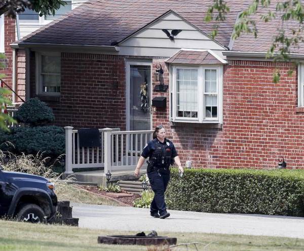 Una policía camina cerca de la casa de Thomas Matthew Crooks, el joven de 20 años identificado por el FBI como la persona que atentó contra el expresidente Donald Trump, durante una investigación en Bethel Park, Pensilvania, EE. UU.( )