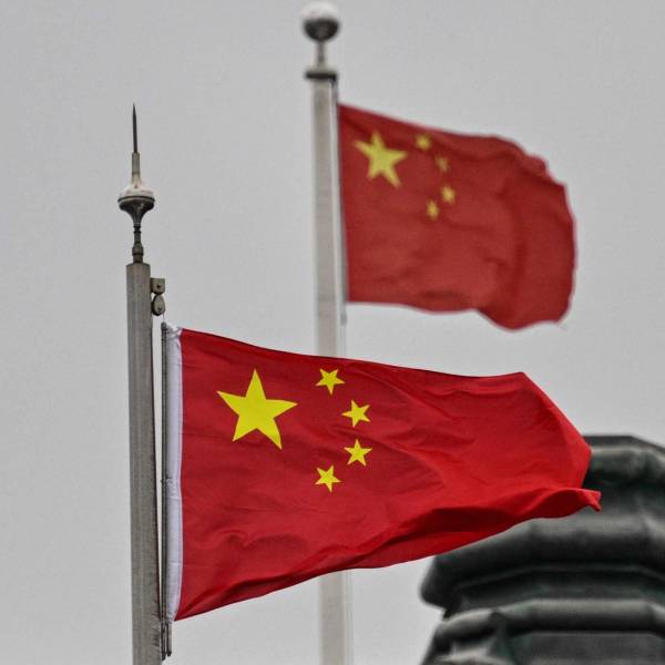 Banderas chinas en edificios del distrito de Huangpu, en Shanghai, el 20 de febrero de 2025.( )
