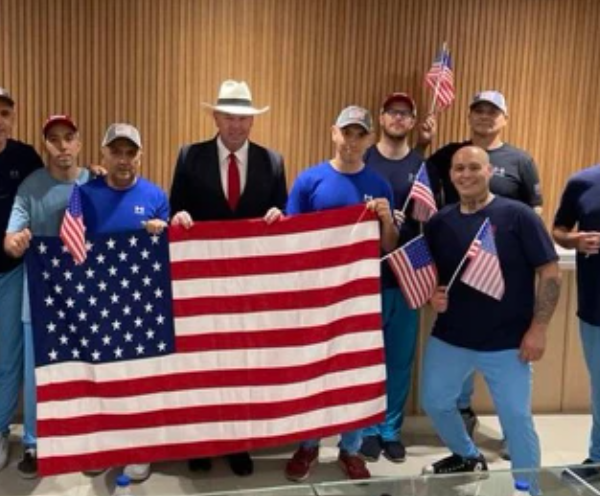 La embajada de EE.UU. en Venezuela publicó en X una foto de los 10 estadounidenses liberados en un canje de prisioneros.( )