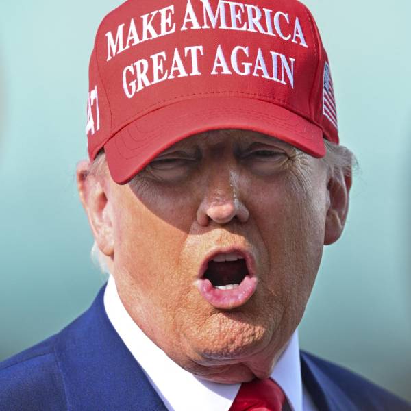 El presidente de Estados Unidos, Donald Trump, habla con los periodistas tras aterrizar en el Aeropuerto Internacional de Palm Beach en West Palm Beach, Florida, el 16 de febrero de 2025.( )