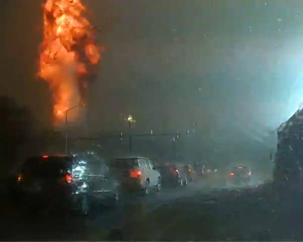 Un oficial del Departamento de Policía de Mount Pleasant grabó un suceso el lunes, mientras transitaba por la autopista 17 en medio de una tormenta eléctrica. Un rayo impactó con mucha fuerza en un poste eléctrico, lo que provocó una enorme explosión y una bola de fuego que se disparó hacia el cielo.