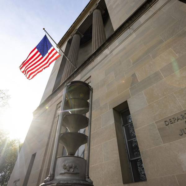 Fotografía de archivo de la fachada del Departamento de Justicia de los Estados Unidos (DOJ) en Washington (EE. UU.)( )