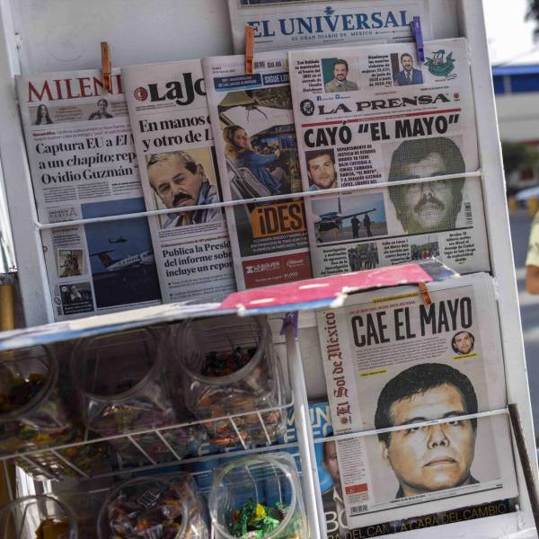 Vista de las portadas de periódicos mexicanos que muestran la noticia de la captura de Ismael "El Mayo" Zambada, en la Ciudad de México, México, el 26 de julio de 2024.( )