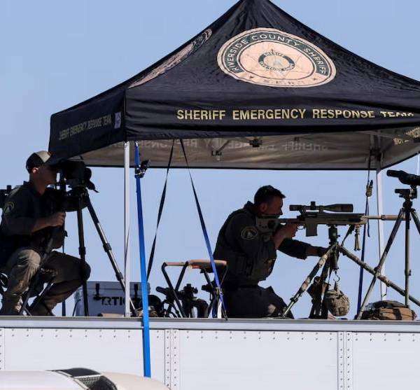 El sospechoso, identificado como Vem Miller, un habitante de Las Vegas de 49 años, estaba en posesión de una escopeta, una pistola cargada y un cargador de alta capacidad, en su automóvil, según un comunicado publicado por la oficina del sheriff del condado de Riverside, en el este de California.
