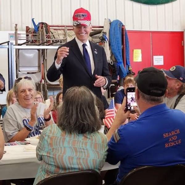 Joe Biden sorprende al ponerse una gorra de Trump en un simbólico acto de unión política