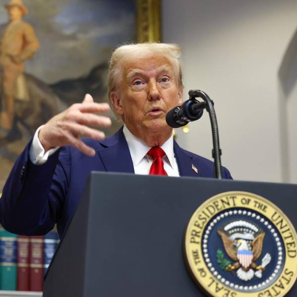 El presidente de Estados Unidos, Donald Trump, ofrece declaraciones en la Sala Roosevelt de la Casa Blanca en Washington D.C.( )
