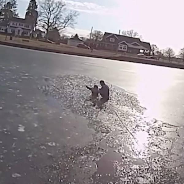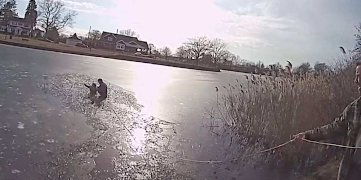 Según contó, le puso una cuerda sobre los hombros y otros dos oficiales en tierra, el patrullero Angelo Marone y el sargento Ryan Buck, sostuvieron la cuerda, junto con bomberos voluntarios, para sacarlo del lago. El hecho fue grabado por la cámara corporal que el oficial tenía en su pecho.