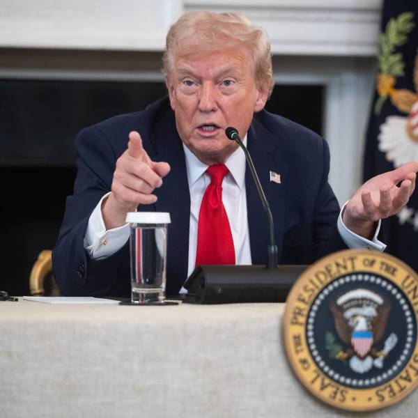 El presidente de EE.UU., Donald Trump, habla durante una mesa redonda en el Comedor de Estado de la Casa Blanca, en Washington D.C.( )