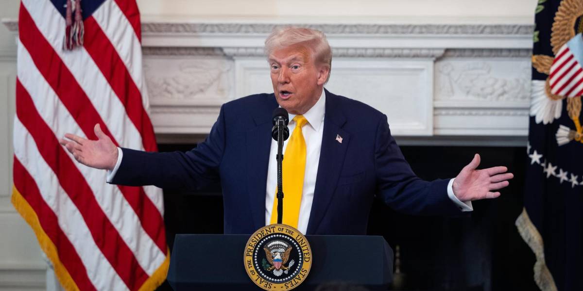 El presidente de EE. UU., Donald Trump, pronuncia un discurso en la Casa Blanca en Washington, DC, EE. UU., el 21 de febrero de 2025.( )