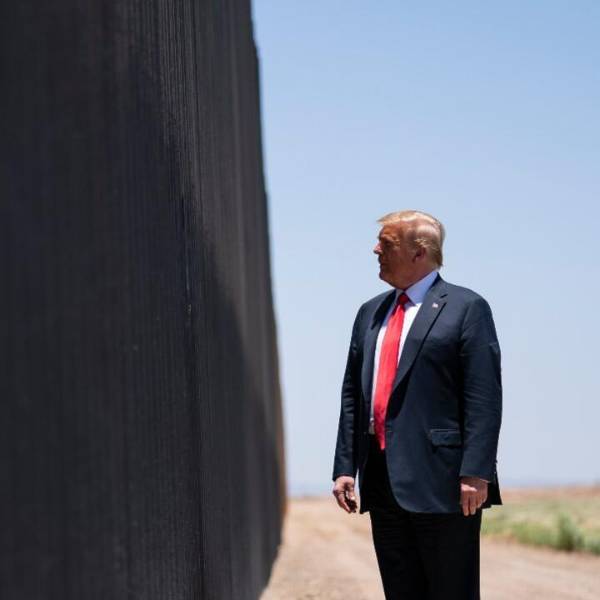 Foto de archivo del presidente Donald Trump recorriendo una sección del muro fronterizo en San Luis, Arizona. ( )