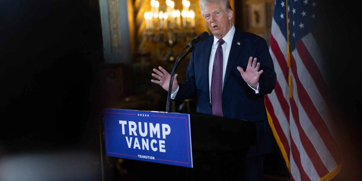 El presidente electo de Estados Unidos, Donald Trump, habla con los medios de comunicación durante una rueda de prensa en el club Mar-a-Lago el 07 de enero de 2025 en Palm Beach, Florida.( )