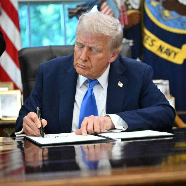 El presidente de Estados Unidos, Donald Trump, firma un decreto ejecutivo en el Despacho Oval de la Casa Blanca, en Washington. ( )