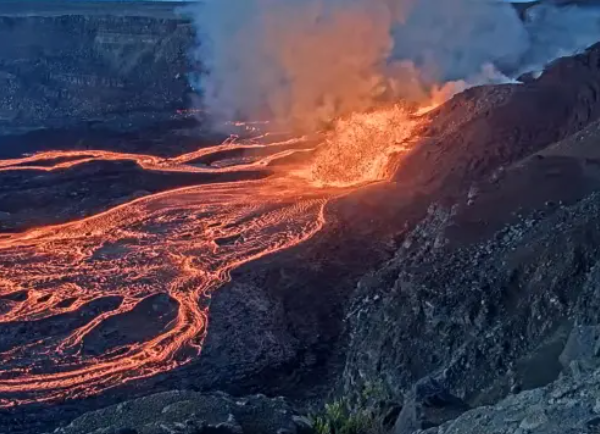 El volcán Kilauea, uno de los más activos del mundo, entró en una nueva fase eruptiva en el cráter Halema'uma'u, según informó el Observatorio de Volcanes de la isla. La erupción, que se inició la madrugada de este miércoles, generó impresionantes fuentes de lava de entre 45 y 90 metros de altura desde un respiradero en el sector norte.
