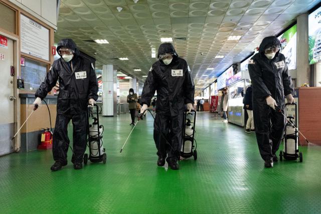 Agentes desinfectan uno de los aeropuertos europeos. Foto: Internet.