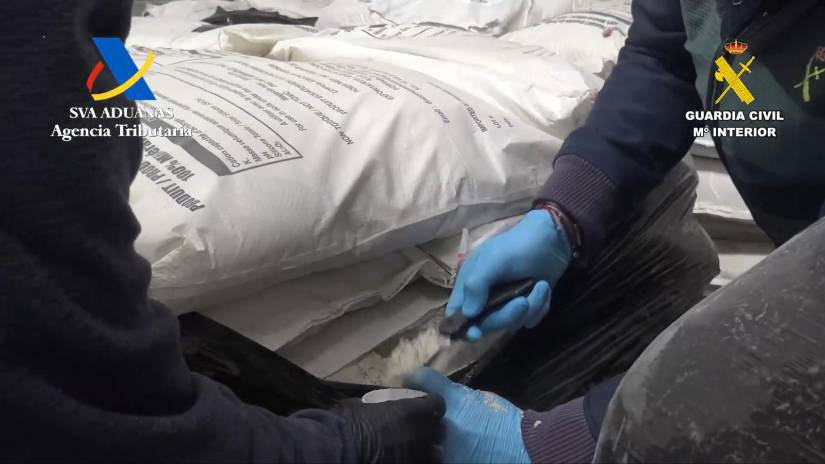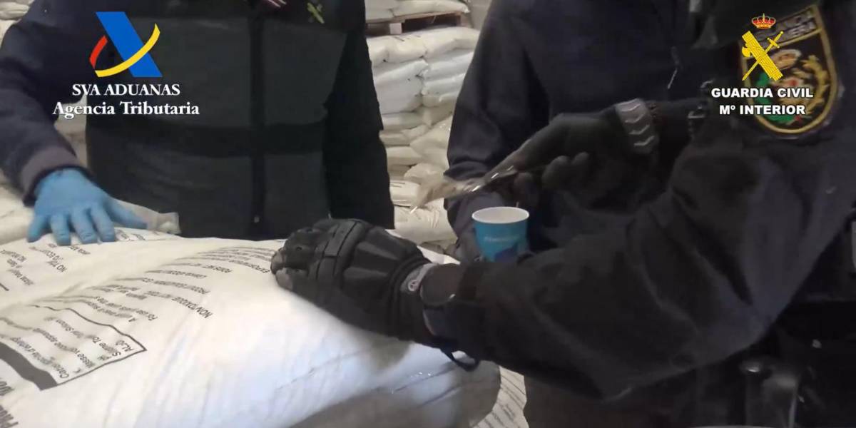 Agentes de la Guardia Civil encuentran cocaína en sacos de polvo de zeolita.( )