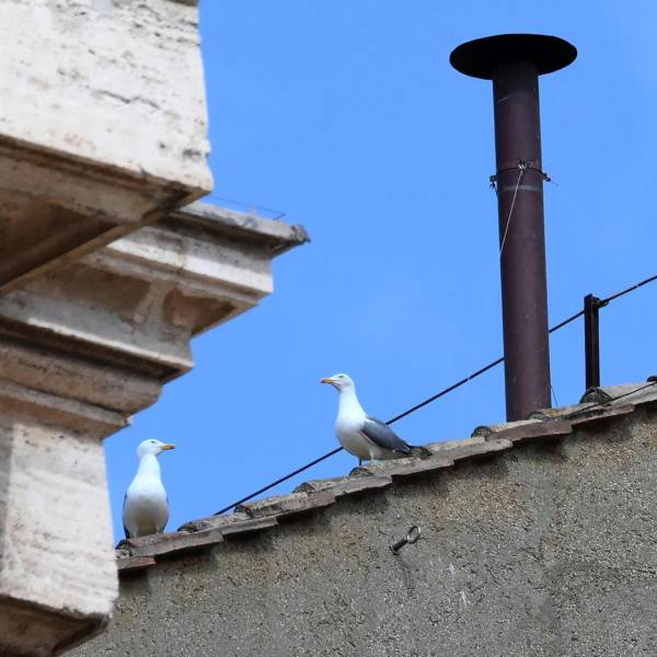 Las gaviotas se han colado hasta en el cónclave con el que la Iglesia católica ha escogido a su nuevo papa este jueves 8 de mayo. Las aves se han posado en estos días junto a la chimenea.