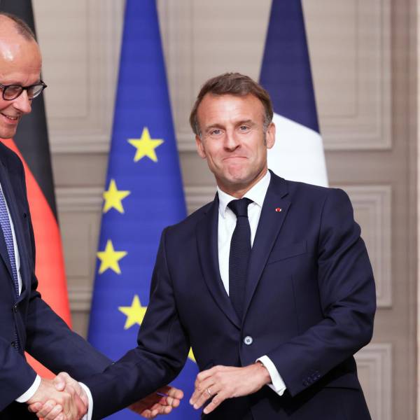 El presidente francés Emmanuel Macron y el canciller alemán Friedrich Merz involucrados en el video.( )