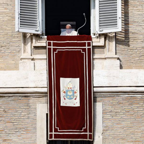 El papa Francisco durante el rezo del Ángelus en la Plaza San Pedro.( )