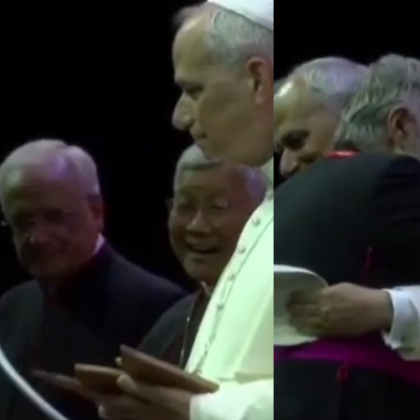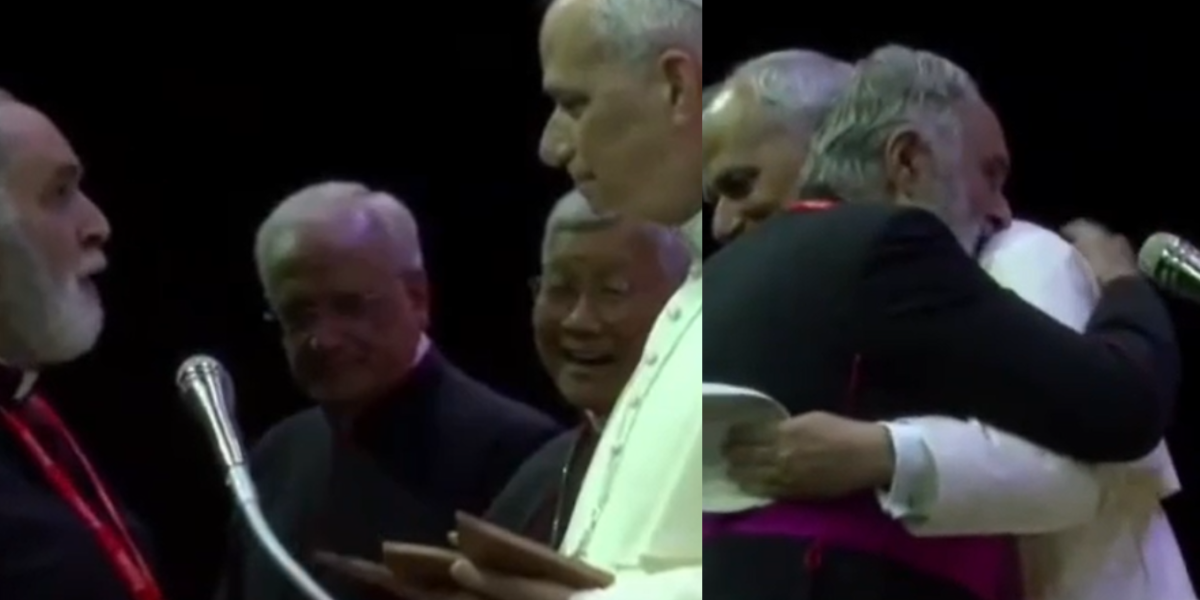 Pero el momento más emotivo vino después, cuando el sacerdote pidió un abrazo, y el Papa no lo dudó, bajó del escenario y se fundieron en un fuerte abrazo, entre palmadas afectuosas y aplausos del público, está escena fue captada por Vatican Media y rápidamente se volvió viral por su sencillez y humanidad.