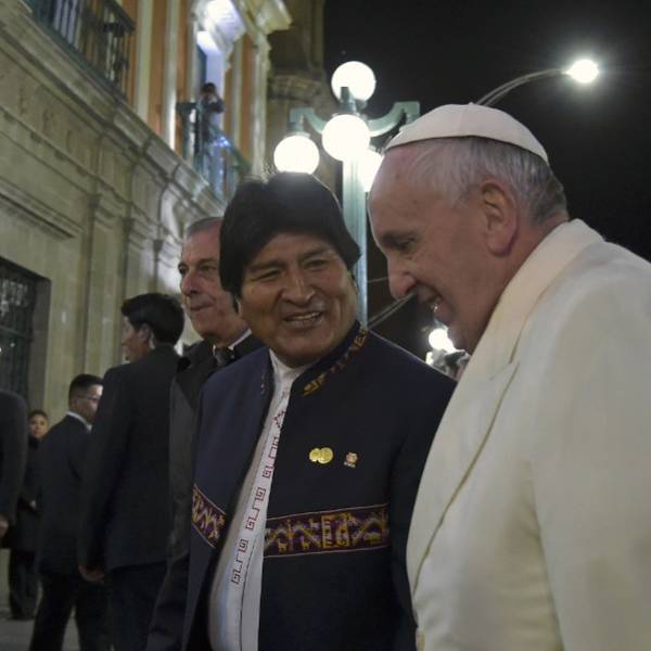 Evo Morales aludió al tema del mar al recibir al papa en Bolivia