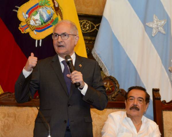 El exalcalde metropolitano de Caracas, Antonio Ledezma, fue condecorado este martes por el Municipio de Guayaquil. Ledezma recibió un reconocimiento por su lucha en pro de la democracia venezolana de manos del alcalde Jaime Nebot.