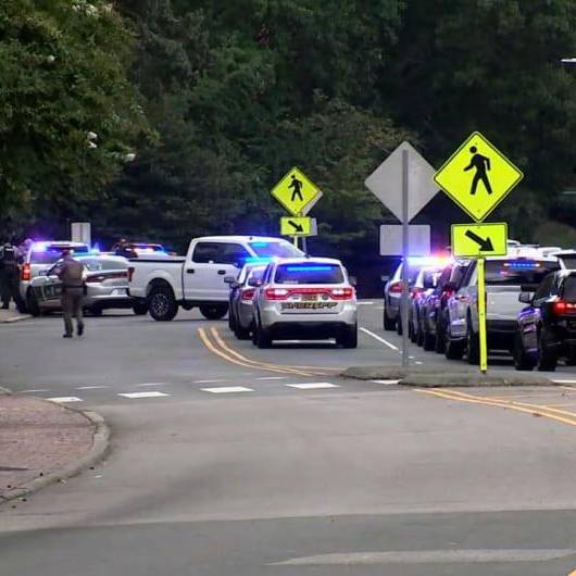Patrullas de policía afuera de la Universidad de Carolina del Norte( )