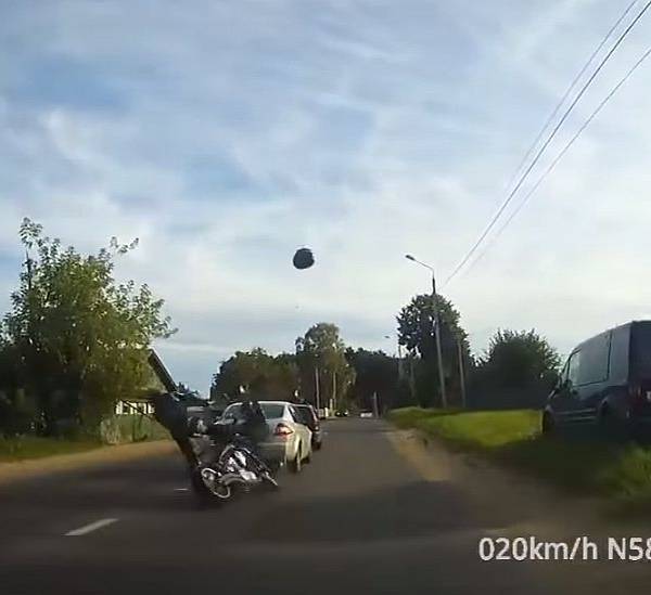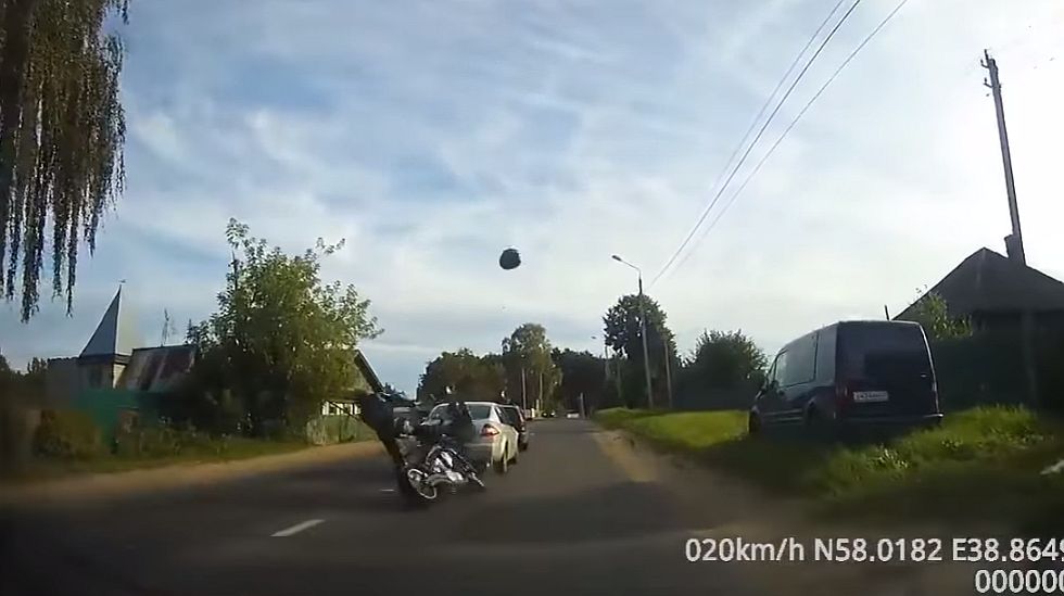 En un pueblo ruso todo parecía andar con normalidad. Un conductor se preparaba para salir nuevamente a la carretera sin pensar que vería un extraño choque entre dos motociclistas.