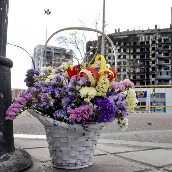 Varios ramos de flores recuerdan este sábado a las víctimas del incendio de un edificio en el barrio de Campanar de València que se ha cobrado la vida de al menos diez personas. ( )