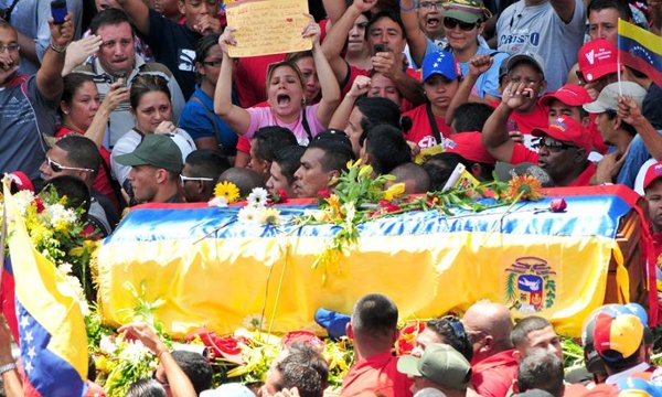 La carroza con el féretro del jefe de Estado llegó a su destino tras un recorrido que duró más de cinco horas e inundó las calles de Caracas de miles de simpatizantes vestidos del tradicional rojo del chavismo y con banderas de Venezuela.