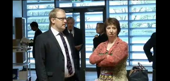 "Creo que sí queremos investigarlo. Quiero decir, no he dejado esto, esto es interesante, cielos", responde Ashton al ministro estonio, a lo que éste le señala que se trata de un "factor muy irritante".