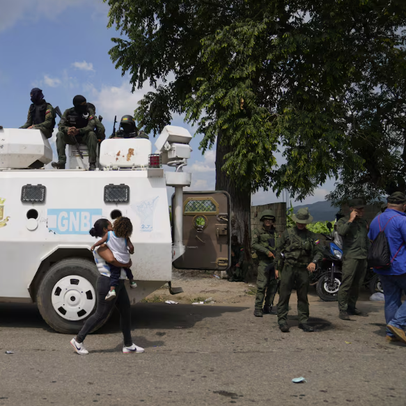 Militares venezolanos durante la intervención en el centro penitenciario de Tocorón (Venezuela), en un intento de desmantelar el Tren de Aragua en el paíS.( )