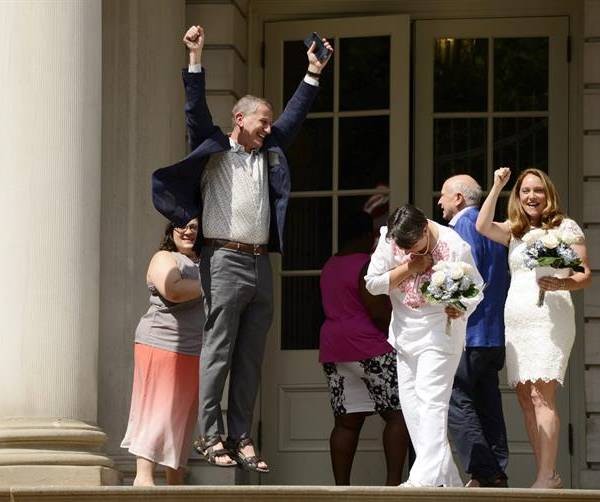 El júbilo se ha extendido por todo el país. La alcaldía de Nueva York, por ejemplo, no ha dudado en colgar de su fachada varias banderas gays para manifestar su alegría.