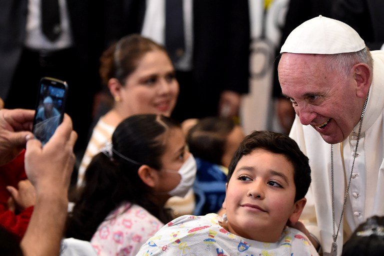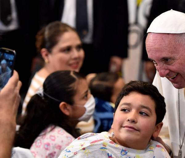El papa Francisco visitó hoy el hospital pediátrico "Federico López" en Ciudad de México y agradeció a todos las personas que no sólo dan medicamentos a los pequeños enfermos sino que además los ayudan con "la cariñoterapia".