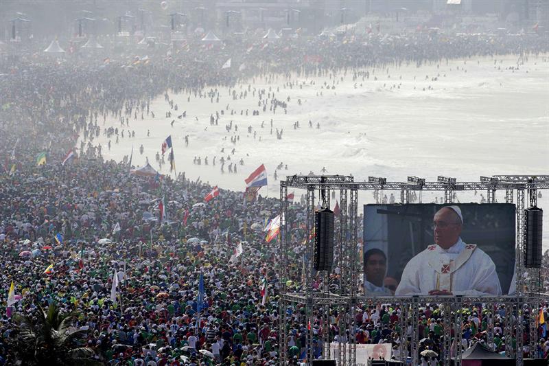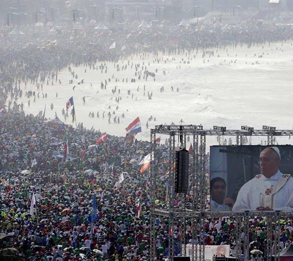 En la playa de Copacabana se celebró la ceremonia de bienvenida oficial al papa, el pasado jueves, el Vía Crucis del viernes y la v vigilia de ayer, sábado.