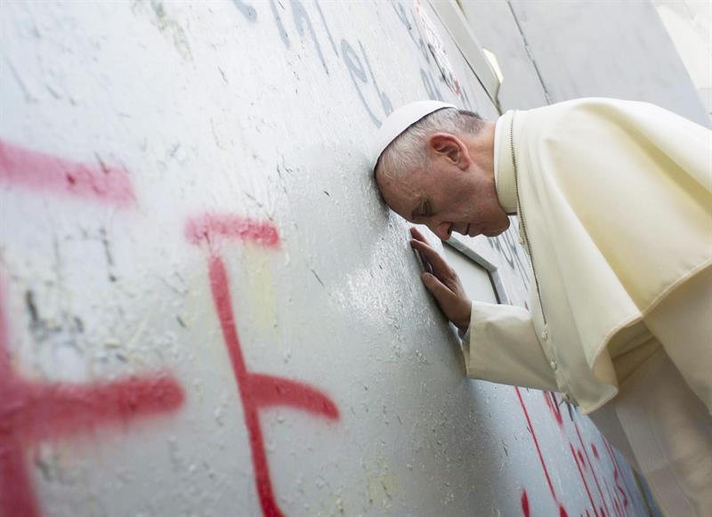El papa oró en silencio por espacio de 5 minutos junto al muro de segregación erigido por Israel.