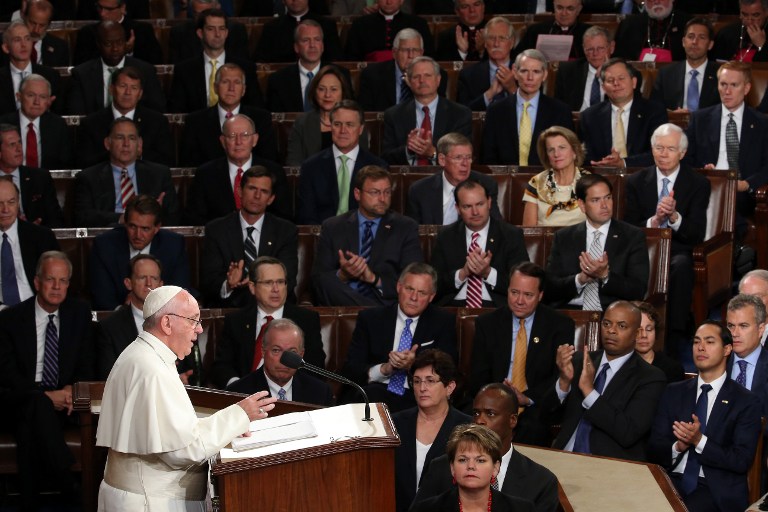 Durante su discurso en el Congreso, el papa englobó varios temas sensibles para la humanidad. Foto: AFP