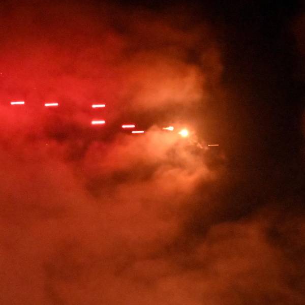 Se escucharon varias explosiones y drones. Algunos de los proyectiles fueron derribados sobre la capital.