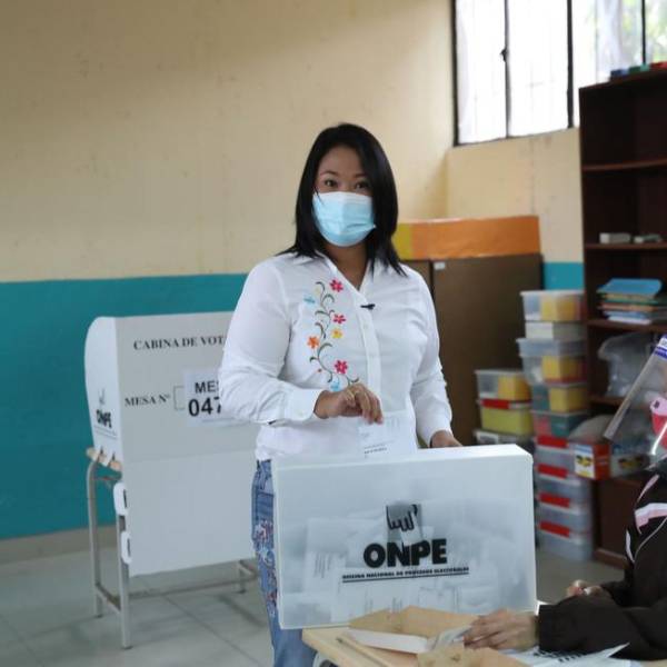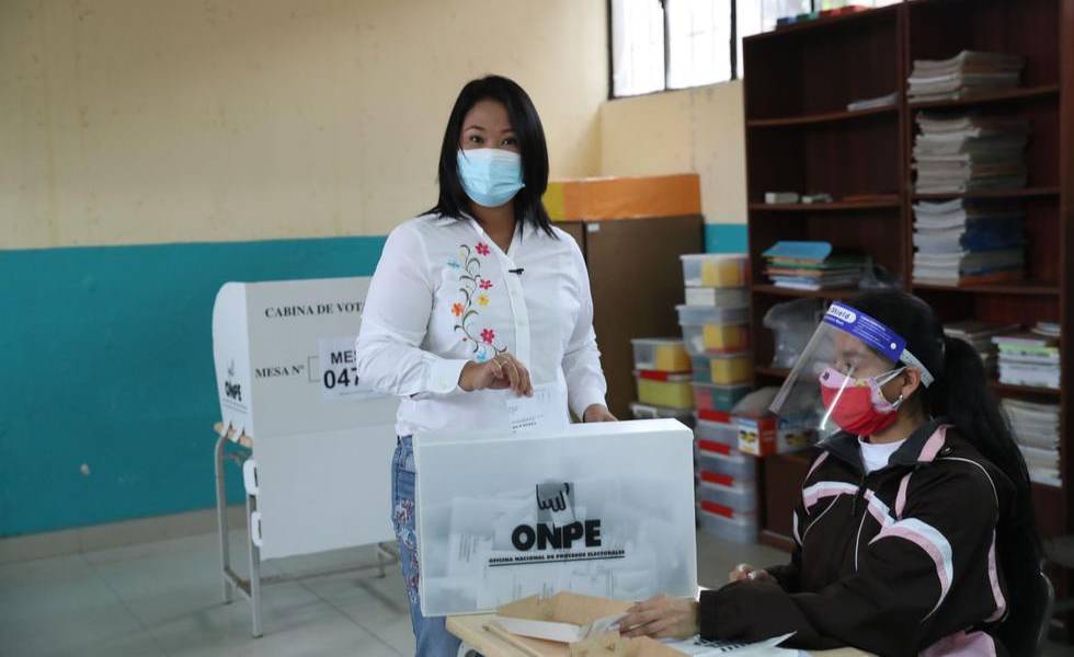 La candidata derechista ingresó a su local de votación, en el distrito limeño de Surco, resguardada por un fuerte contingente policial, donde votó cuando faltan tres horas para el fin del balotaje, que disputa con el profesor izquierdista Pedro Castillo.