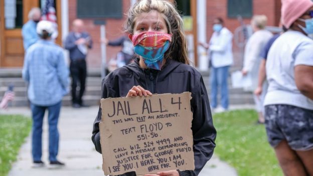 GETTY IMAGES De acuerdo a la autopsia, la acción de Chauvin influyó en la muerte la pasada semana del afroestadounidense Floyd, que ha levantado una ola de protestas en Estados Unidos.