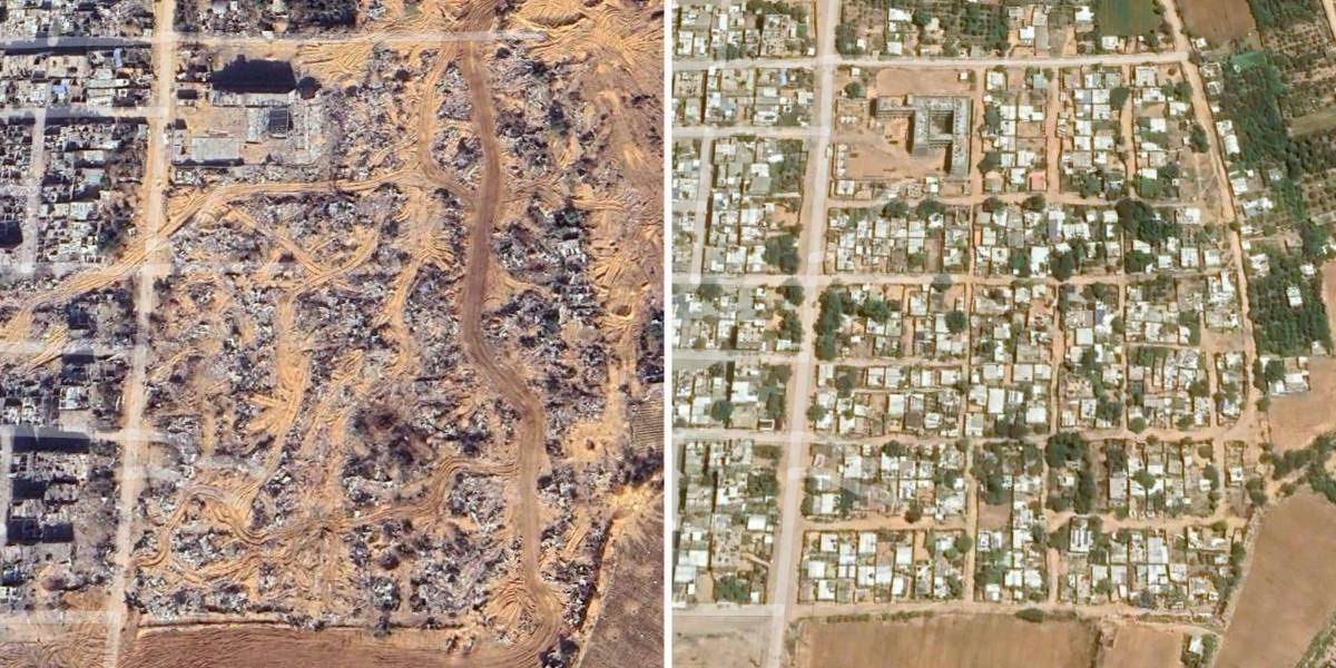 Las nuevas imágenes de satélite ofrecen una cruda comparación del antes y el después en la Franja de Gaza.