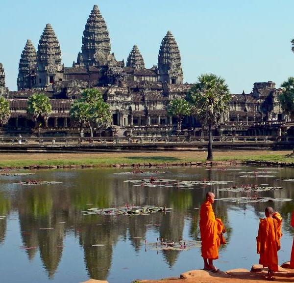 El parque arqueológico de Angkor, situado en Siem Reap, acoge los restos de varias capitales del Imperio Khmer, que dominó gran parte del Sudeste de Asia entre los siglos IX y XV.