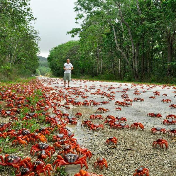 En la remota Isla de Navidad , perteneciente a Australia , un fenómeno natural atrae cada año la atención de biólogos y turistas: millones de cangrejos rojos (Gecarcoidea natalis) realizan su migración anual desde los bosques del interior de la isla hasta la costa, en busca de reproducción. Este desplazamiento, que transforma por completo el paisaje, es considerado uno de los espectáculos naturales más impactantes del planeta.