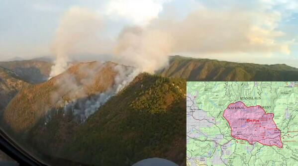 El fuego ha calcinado más de 4.000 hectáreas de matorral, roble y pino en el bosque nacional Stanislaus y continúa extendiéndose.
