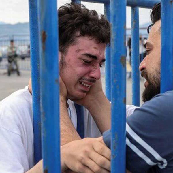 Se observa cómo los dos se abrazan a través de las rejas del puerto, totalmente sobrecogidos por la emoción de poder verse de nuevo con vida.