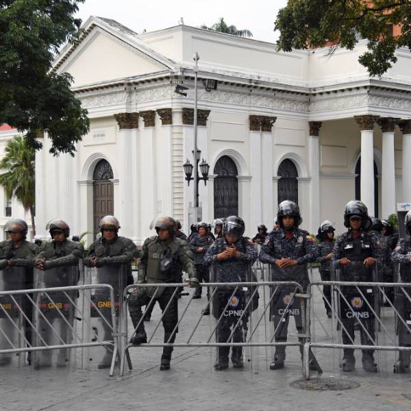 "Nunca ha sido así", dijo Guaidó, en un intercambio de palabras con un agente ante la prensa, frente a un piquete policial en los alrededores del Palacio Legislativo en el centro Caracas. Policías y militares cerraron los accesos al edificio en un operativo de seguridad, comprobaron periodistas de la AFP.