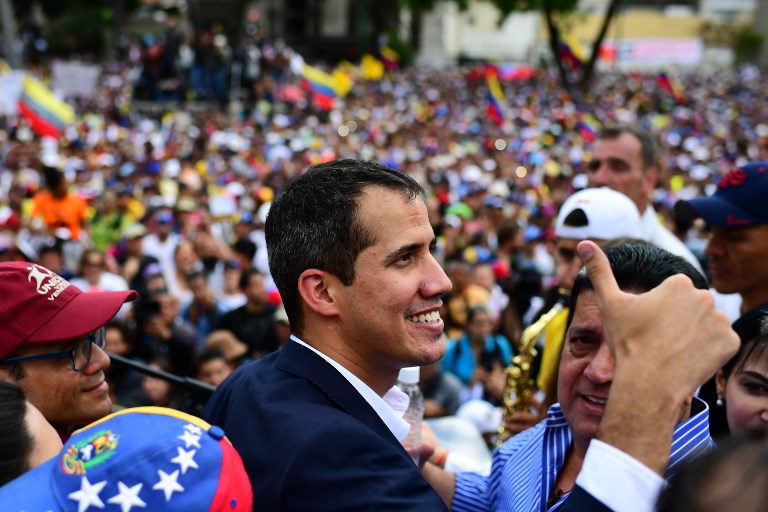 Ante miles de personas reunidas en la plaza Alfredo Sadel, en el sector de Las Mercedes, este de Caracas, el presidente interino de Venezuela, Juan Guaidó, aseveró que insistirá en el ingreso de la ayuda humanitaria a su país y alentó a su seguidores a "continuar movilizándose para recuperar la libertad".