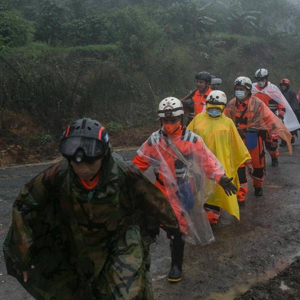 - Socorristas se dirigen a la aldea Quejá hoy, desde San Cristóbal Verapa (Guatemala). EFE