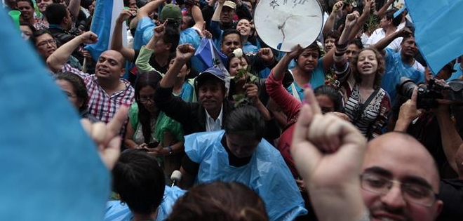 Centenares de guatemaltecos celebraron hoy 1 de septiembre el retiro de la inmunidad del presidente del país centroamericano, Otto Pérez Molina, quien está acusado de liderar una red de corrupción aduanera conocida como "La Línea".