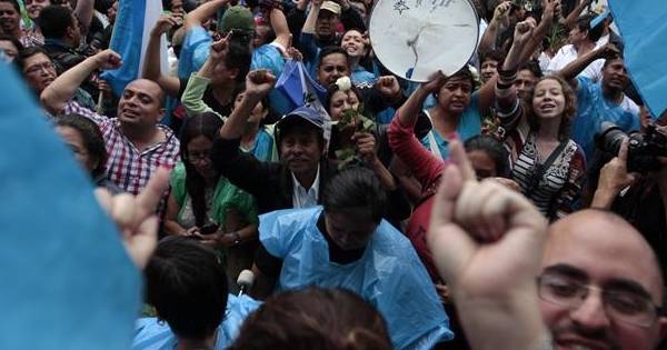 "Guatemala ya está harta del Gobierno del PP", "Ya cayó la Baldetti, Otto Pérez pronto va a caer", eran algunos de los clamores que se podían escuchar en la plaza entre bocinazos, silbatos y tambores, horas después de que el Congreso desaforase al primer presidente de la historia del país y a cinco días de unas elecciones generales.